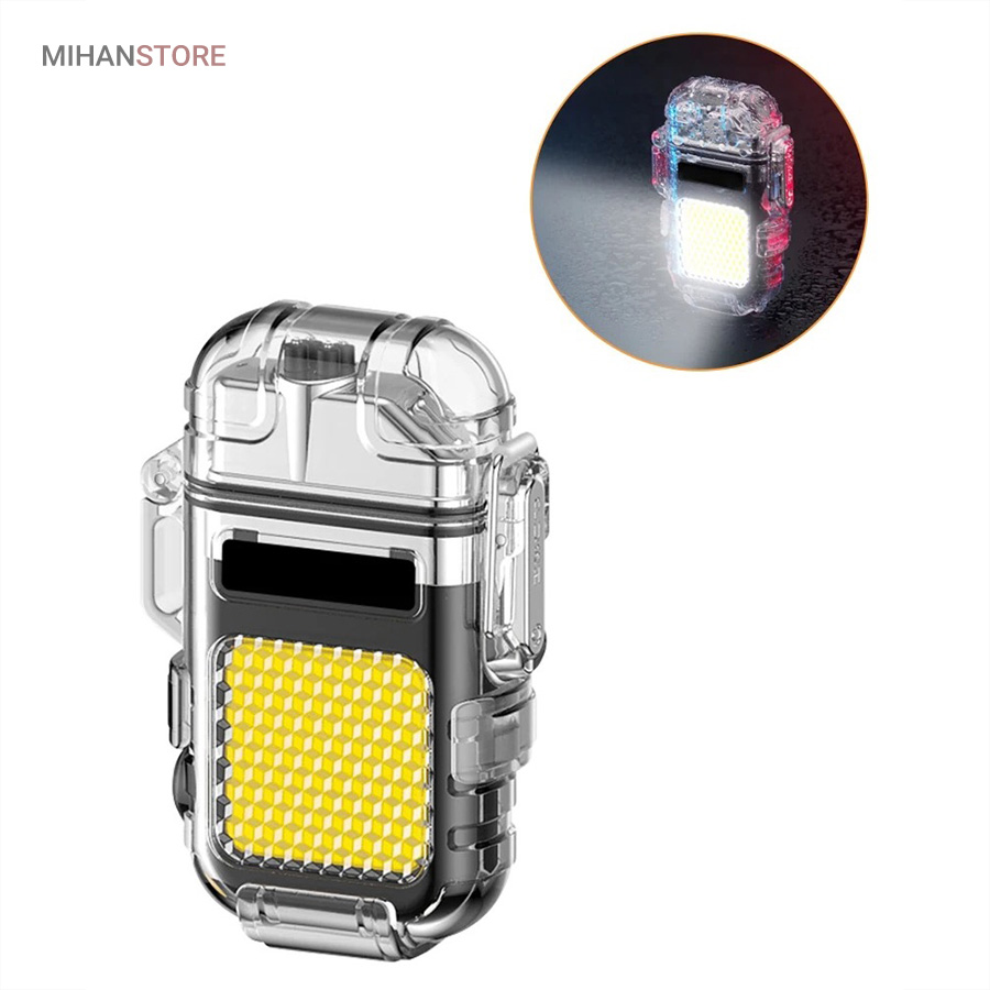 این مدل فندک بدون شعله است و نیازی به سوخت (گاز) ندارد. به همین خاطر استفاده از آن بسیار راحت است و کاربرد بیشتری نسبت به فندک معمولی دارد. در واقع منشا تولید حرارت در فندک پلاسما شبیه به قوس الکترونیک است؛ با حرارت پایین تر، که توانایی بالاتری در روشن کردن دارد و در هنگام وزش باد نیز قابل استفاده است و خاموش نمی‌شود. فندک الکتریکی (شارژی) چراغ قوه دار هدیه ای ارزنده و زیبا برای افرادی که دنبال محصولات لاکچری هستند. ویژگی منحصر به فرد این فندک ضدآب بودن آن است. یک پوشش پلاستیک محکم شفاف روی کل بدنه محصول قرار گرفته که نه تنها زیر باران، بلکه داخل آب (استخر، دریا و …) نیز قابل استفاده است. شما با خرید این محصول جذاب نه تنها صاحب یک فندک کاربردی خواهید شد بلکه یک چراغ قوه کوچک جیبی را نیز از آن خود خواهید کرد! روی بدنه این فندک یک چراغ COB سه حالته تعبیه شده که با دکمه پاور بغل آن روشن و خاموش می‌شود. (حالت نور کم، نور چشمک زن و نور زیاد)این فندک پلاسما یک فندک ضد آب و ضد باد است که می توانید در مواقع اضطراری به آن اعتماد کنید. روزهایی که باید نگران خشک نگه داشتن کبریت ها یا خاموش شدن شعله فندک های معمولی باشید، گذشته است. فندک الکتریکی (شارژی) چراغ قوه دار می تواند به طور مداوم قوس پلاسمای آتش را حفظ کند، حتی از حین بادهای 80 مایل در ساعت. با یک قاب بیرونی بادوام، مهر و موم حلقه فلزی و یک قفل، دیگر نگران ورود آب و خراب شدن این فندک قوس الکترونیک نخواهید بود. صرف نظر از اینکه از آن برای راه‌اندازی آتش در حیاط خلوت، کمپینگ یا چیزهای ضروری تر مانند شرایط بقا یا اضطراری استفاده می کنید، یک فندک قابل اعتماد خواهید داشت که می تواند در حال حرکت نیز شارژ شود.